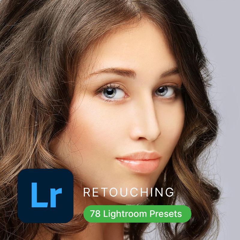 The Retouching pack offers 78 Lightroom presets, designed to enhance portrait retouching with smooth skin tones, enhanced details, and natural lighting. This collection helps achieve flawless, professional edits for beauty and portrait photography.