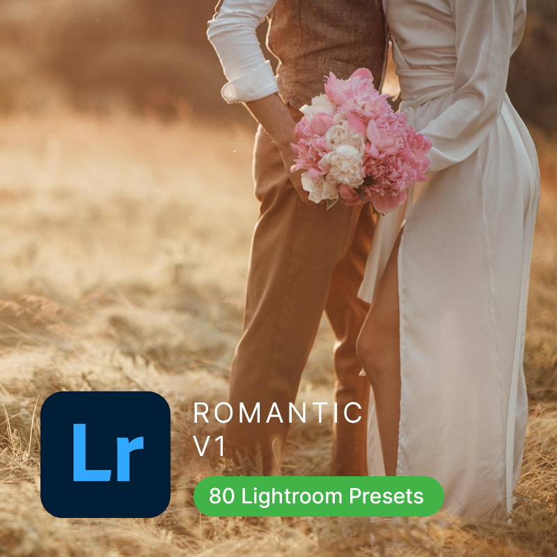 The Romantic pack offers 80 Lightroom presets, designed to enhance romantic photography with soft colors, smooth contrasts, and warm lighting. This collection is perfect for creating intimate, heartwarming visuals that capture the essence of love and affection.